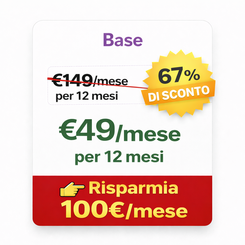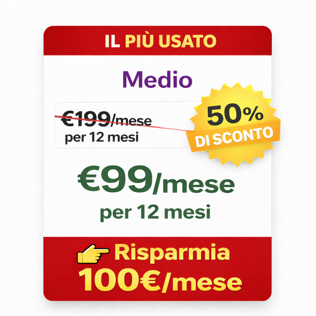 Offerte valide fino al 23/02, dopo i prezzi aumentano del 50%. Blocca subito il prezzo!